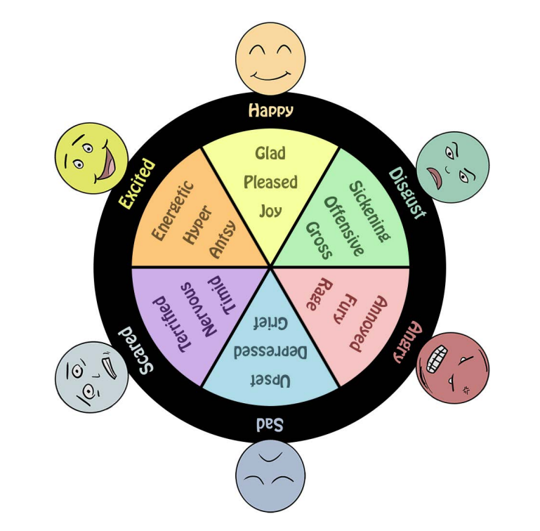 برای آموزش زبان احساسات، استفاده از محرک های دیداری بسیار کمک کننده است. می توانید از جدول چهره های احساسی، کارت های تصویری یا حتی نقاشی های ساده استفاده کنید. چند چهره با حالت های مختلف روی کاغذ بکشید و از کودک بپرسید «فکر می کنی این آدم چه احساسی دارد؟» یا «کدام چهره شبیه حالت تو وقتی از پارک بر می گردیم است؟». همچنین می توانید یک جدول کوچک روی یخچال بچسبانید که در آن چند شکلک احساسی وجود دارد و کودک هر روز صبح یا شب، شکل نزدیک به احساس خود را انتخاب کند. این تمرین ساده، علاوه بر تقویت واژگان احساسی، به او کمک می کند کم کم درون خود را بهتر مشاهده کند. در سنین بالاتر، می توان از «چرخ احساسات» انگلیسی کودکان نیز الهام گرفت (نمونه: Wheel of Emotions) و معادل های فارسی را با هم پیدا کرد.